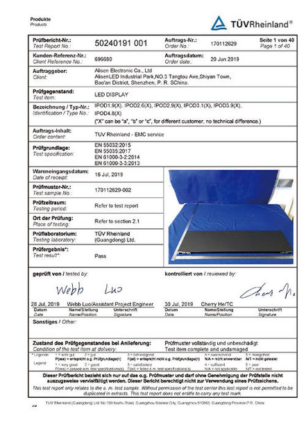 Zarządzanie jakością wyświetlacza AlisenLED, w tym przetwarzanie poniżej: